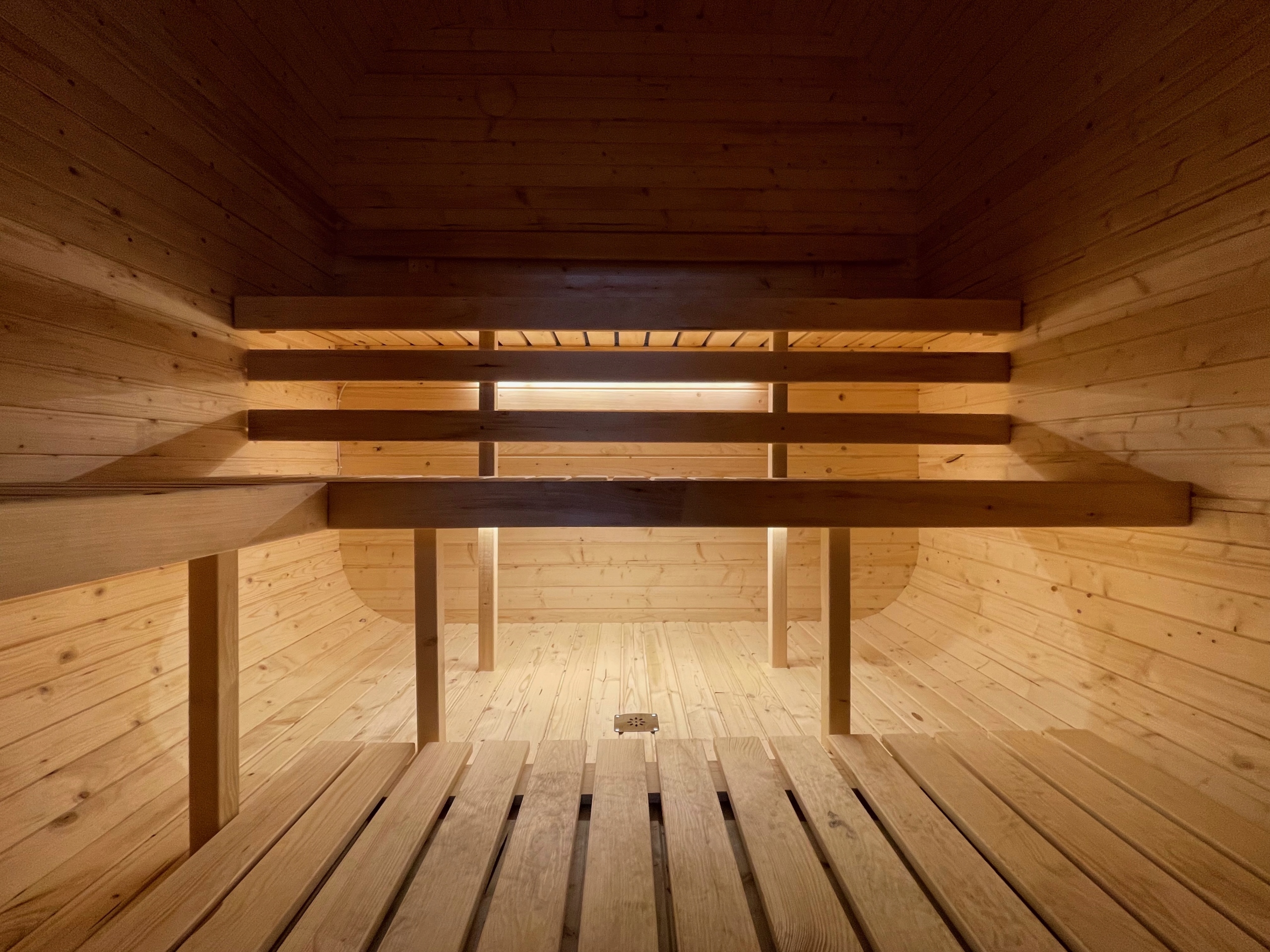 Lindenholz-Bänke auf zwei Ebenen: Im Gegensatz zu günstigeren Herstellern verwenden wir für unsere Bänke hochwertiges Lindenholz (Linde). Dieses Holz ist besonders harzfrei, wird nicht zu heiß und bietet ein unvergleichlich angenehmes Hautgefühl.
