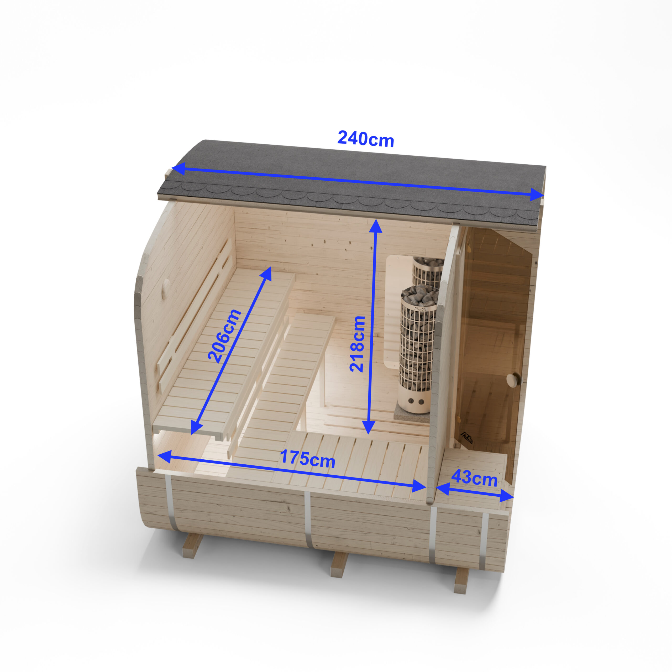 | Breite Saunaraum | 206 cm |